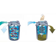 Встроенный УФ-обеззараживатель с помощью УФ-лучей заботится об уменьшении числа возбудителей заболеваний и собирает в сгустки плавающие в воде водоросли таким образом, чтобы они лучше удерживались в фильтре.